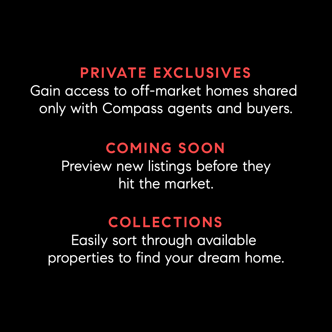 • Compass RE is a licensed real estate broker. All material is intended for informational purposes only and is compiled from sources deemed reliable but is subject to errors, omissions, changes in price, condition, sale, or withdrawal without notice. No statement is made as to the accuracy of any description or measurements (including square footage). This is not intended to solicit property already listed. No financial or legal advice provided. Equal Housing Opportunity. Photos may be virtually staged or digitally enhanced and may not reflect actual property conditions.